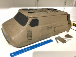 Hollow cast resin shell, used for crash landing and explosion scenes in the episode The Fire Within. Sports the Pyrist emblem on the doors. Condition – ‘blown up,’