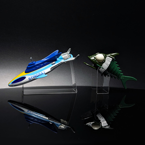 Ghost Stands are produced from a special highly durable and flexible, thin crystal clear plastic material. Every stand has had hours of engineering dedicated to its development, especially as each toy or model is positioned into a particular dramatic pose when designing. This affects the centre of gravity of the piece and the challenge is to make a Ghost Stand that is well hidden, stable enough to display and easy to clip on to the piece without marking it, damaging stickers or paintwork.