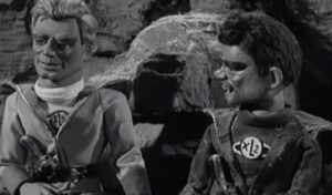 2062 AD: Space City detects a planetomic missile being fired at Earth and directs Steve Zodiac and his World Space Patrol craft Fireball XL5 to destroy it. The Fireball crew – Steve, with Venus, Matt Matic and Robert – head for the missile’s origin, Planet 46, but when Steve and Venus land in Fireball Junior they are captured by the Subterrains. The aliens plan to use another missile to destroy Earth – this time with Venus on board!