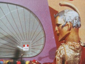 This feature-length episode of Stingray was prepared by the AP Films team as a presentation for Japanese television executives who visited the studios in 1963. Rather than simply screen four complete episodes of Stingray for the executives, Lew Grade and Gerry Anderson decided to tum the selected episodes into a feature film by shooting 4½ minutes of additional footage to link the four stories together. The film begins with the standard opening title sequence and the whole of the first episode, Stingray, but then cuts to the first section of linking footage (revealing Commander Shore and Admiral Denver, who have just finished watching the events of that episode projected on a screen in Shore’s apartment) instead of the end titles. The three subsequent episodes – An Echo Of Danger, Raptures Of The Deep and Emergency Marineville – are then shown without title sequences as if presented as part of the characters’ review of taped records of Stingray missions. The film concludes with a final section of linking material in which Atlanta provides the cue for ‘Aqua Marina’ before the standard closing title sequence. Forgotten for nearly 40 years, the framing sequences for the film were rediscovered in 2001 and released as a special feature on Carlton Visual Entertainment’s Stingray Volume 3 DVD the same year.