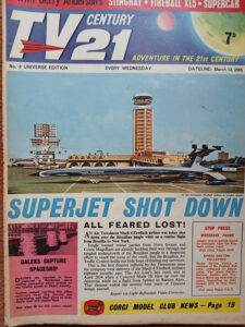 1965 – Fireflash appears on the cover of TV Century 21 comic issue 8 with a photo from Thunderbirds, the aircraft is featured in the Stingray strip inside