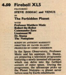 1963 – 4.50pm – Fireball XL5 – The Forbidden Planet (ATV London, Ulster, Westward and Channel)