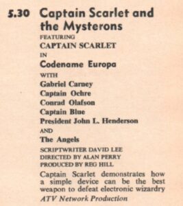 1968 – 5.30pm – Captain Scarlet – Codename Europa (ATV London, Channel, Scottish, Westward and Border)