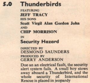 1966 – 5.00pm – Thunderbirds – Security Hazard (Anglia)