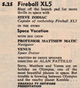 1963 – 5.25pm – Fireball XL5 – Space Vacation (Granada and Wales West And North)