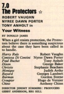 1973 – 7.00pm – The Protectors – Your Witness (Channel, Westward and London Weekend)