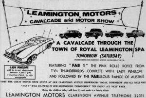 1969 – Fab 1 and Lady Penelope (in human form) appear in Leamington Motors Cavalcade And Motor Show in Royal Leamington Spa which will drive through the town. Fab 1 will be a feature in their showroom for the next week