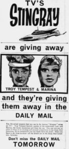 1965 – A few newspapers run a competition to win either an original Troy Tempest or Marina puppet that was used in the production of Stingray, it appears in The Staffordshire Sentinel today and The Daily Mail tomorrow