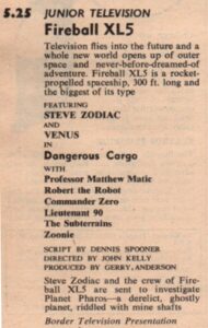 1963 – 7.00pm – Fireball XL5 – Spy In Space (ATV Midlands)