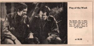 1964 – 9.10pm – John Tate and Ray Barrett appear in Play Of The Week on Anglia Television entitled Jacko At War