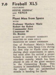 1963 – 7.00pm – Fireball XL5 – Plant Man From Space (ATV Midlands)