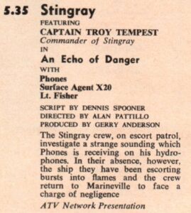 1964 – 5.35pm – Stingray – An Echo Of Danger (Anglia, Border, Grampian, Southern and ATV London)