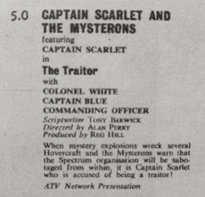 1968 – 5.00pm – Captain Scarlet – Traitor (ATV Midlands)