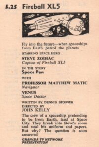 1963 – 5.25pm – Fireball XL5 – Space Pen (Granada and Wales West And North)