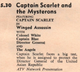 1968 – 5.30pm – Captain Scarlet – Winged Assassin (ATV London, Channel, Scottish, Westward and Border)