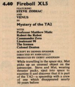 1963 – 4.40pm – Fireball XL5 – The Mystery Of The TA2 (ATV London and Ulster)