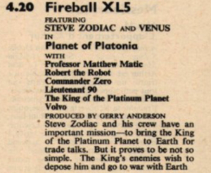 1963 – 4.20pm – Fireball XL5 – Planet Of Platonia (Southern)