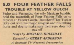 1960 – 5.00pm – Four Feather Falls – Trouble At Yellow Gulch (Anglia, ATV Midlands, T.W.W., Scottish, Granada, Southern, Ulster, Tyne Tees and Associated-Rediffusion)