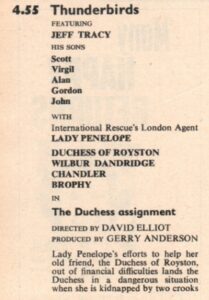 1966 – 4.55pm – Thunderbirds – The Duchess Assignment (Anglia)