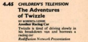 1967 – 4.45pm – The Adventures Of Twizzle is broadcast for the last time on Rediffusion and Border Television with the episode Another Racing Car