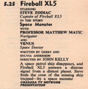 1963 – 5.25pm – Fireball XL5 – Space Monster (Granada and Wales West And North)