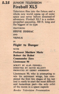 1963 – 5.25pm – Fireball XL5 – Flight To Danger (Border)