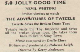1958 – 5.00pm – The Adventures Of Twizzle – Twizzle Saves The Broken Down Toys (ATV Midlands, Granada, Scottish, T.W.W. and Associated-Rediffusion)