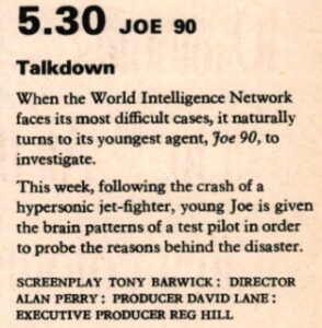 1969 – 5.30pm – Joe 90 – Talkdown (ATV Midlands, Ulster, Westward and Channel)